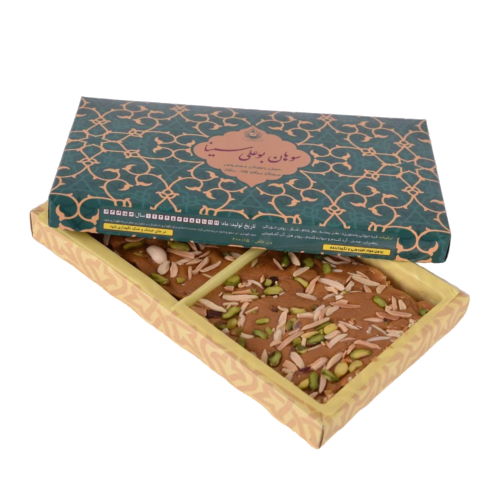 ترکیبات شامل کره حیوانی پاستوریزه ، مغز پسته ، مغزه بادام ، شکر ، روغن خوراکی ، زعفران ، عسل ، آرد گندم ، جوانه گندم و پودر هل میباشد .